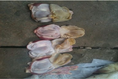 腺胃腫大如球狀、腺胃乳頭變平、胃壁增厚,雞內(nèi)金易剝離、糜爛、潰瘍,肌胃糜爛、潰瘍、嚴(yán)重的穿孔,以及角質(zhì)層和肌肉層之間有白斑的現(xiàn)象。
